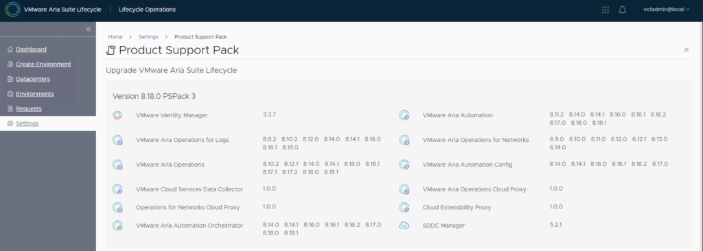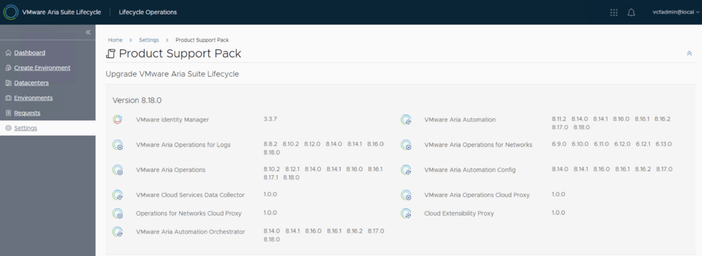 In this guide i will go over the manual steps of getting an existing 8.x Aria Suite Lifecycle appliance to support the latest product releases available. Here is a great blog that goes in to the details about what the Product Support Pack is https://blogs.vmware.com/management/2019/01/vrslcm-pspak.html. Typically the newer Product Support Pack is included part of the upgrade for Aria Suite Lifecycle, however sometimes there are product releases in between releases where product support packs come in handy. As of 8.16.0 Product Support Pack 4 we can no longer automatically download the Product Support Pack files. The release notes can be found here.