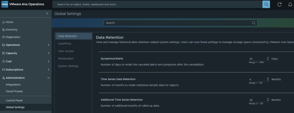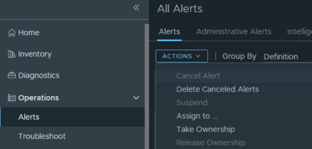 - By default, Aria Operations keeps canceled/inactive alerts for 30 days. You can safely lower this (Brock recommends 10 days) to keep your database lean and your troubleshoot tabs clean.