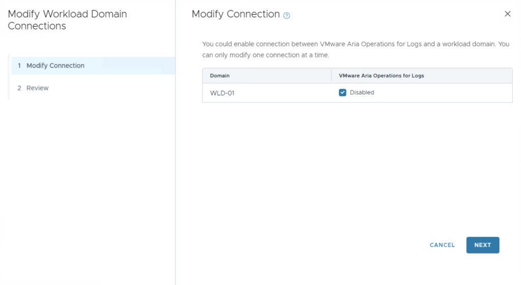 • Connect a VI Workload Domain to VMware Aria Operations for Logs