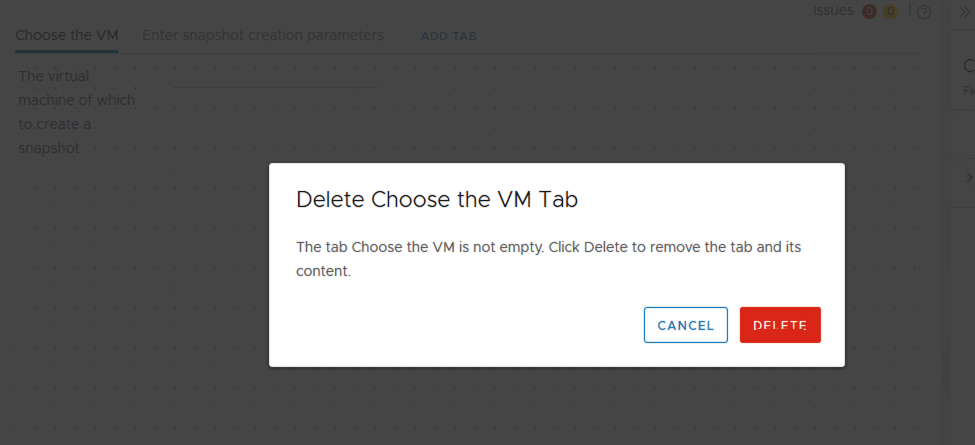 The next step is to fix the inputs. We will be removing the Choose the VM tab by clicking on the x