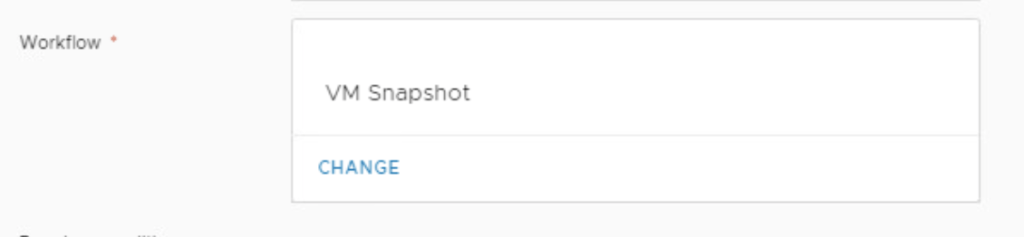 Under Workflow click Add and pick VM Snapshot