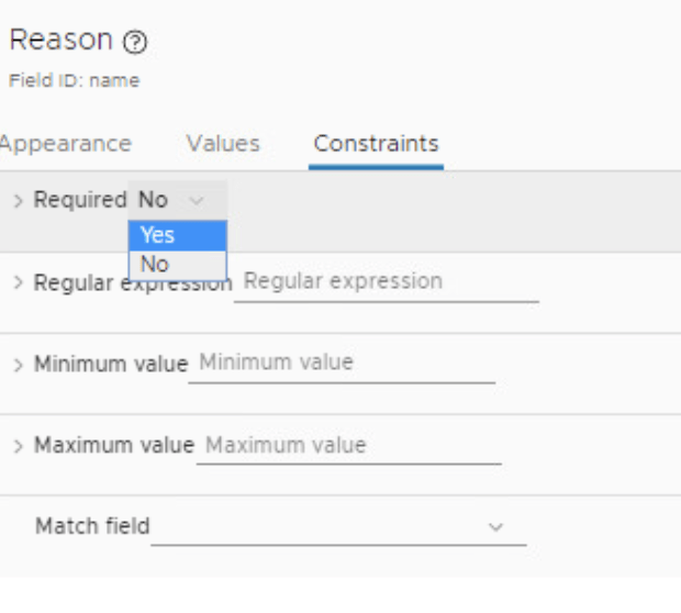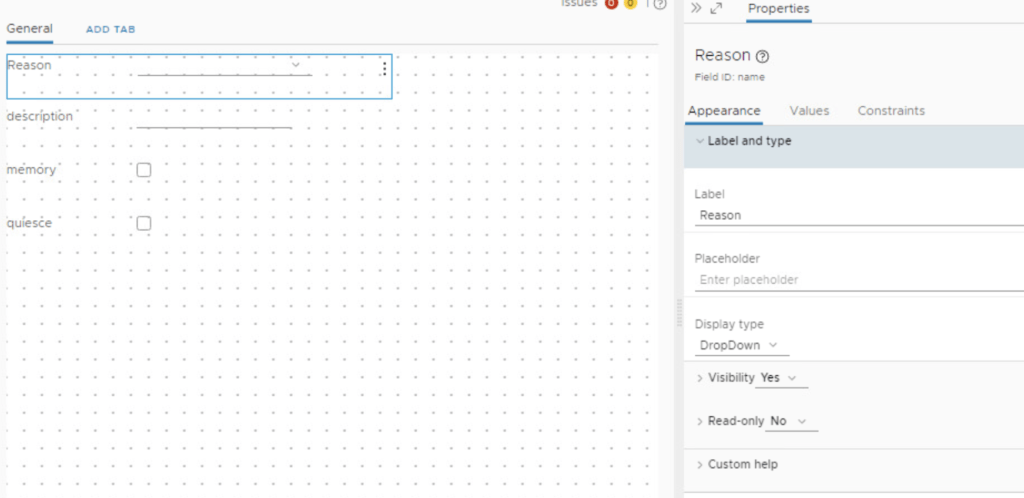 click on vm and change the Label to Reason and Display type to DropDown