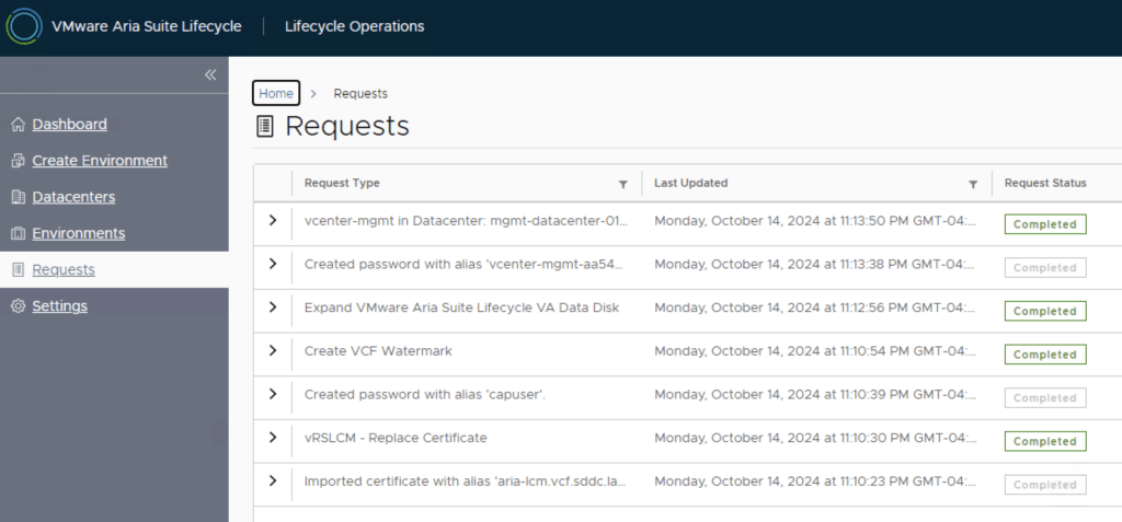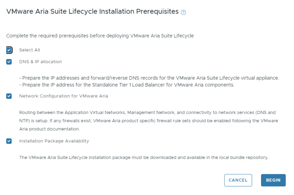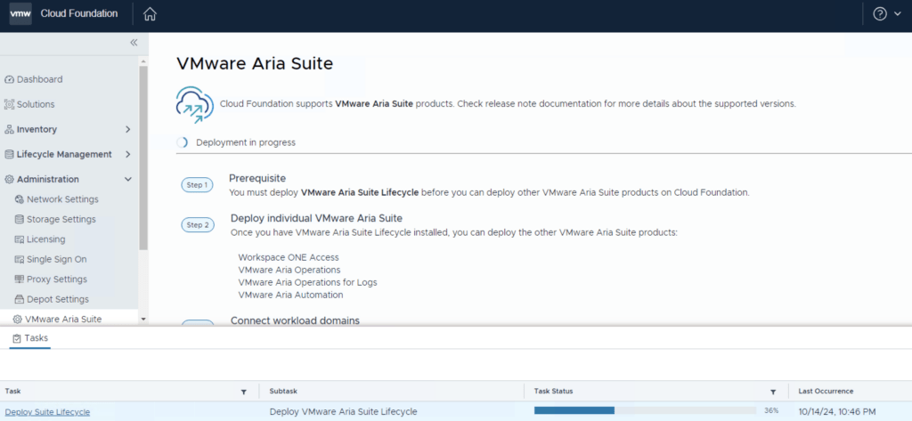 We can now proceed with the deployment of the rest of the components. The deployments will be done from Aria Suite Lifecycle.