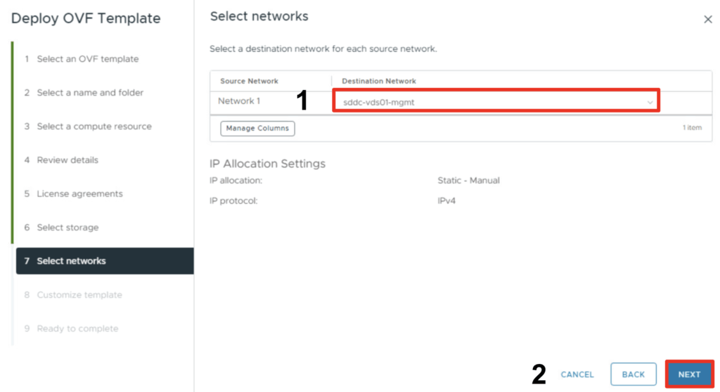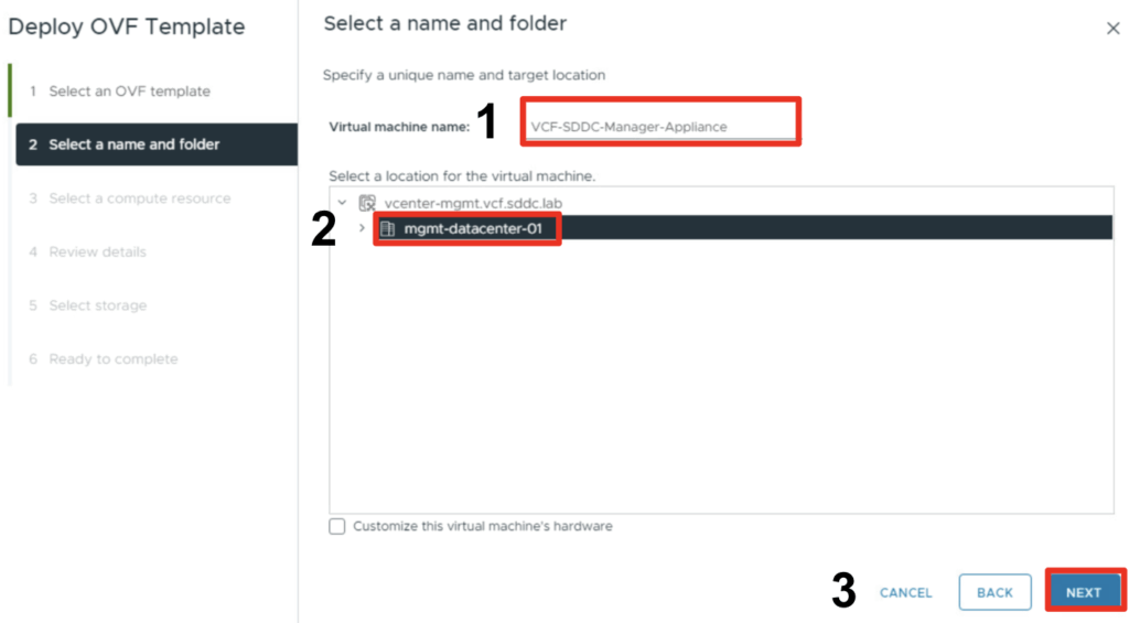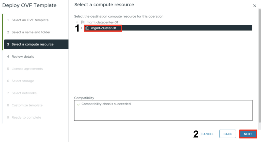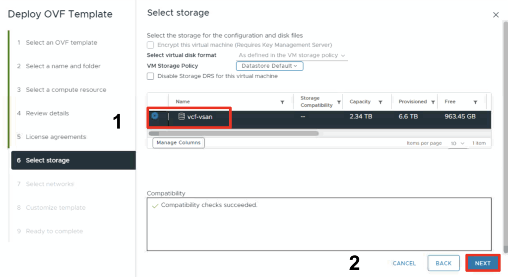 - Select a datastore for the deployment