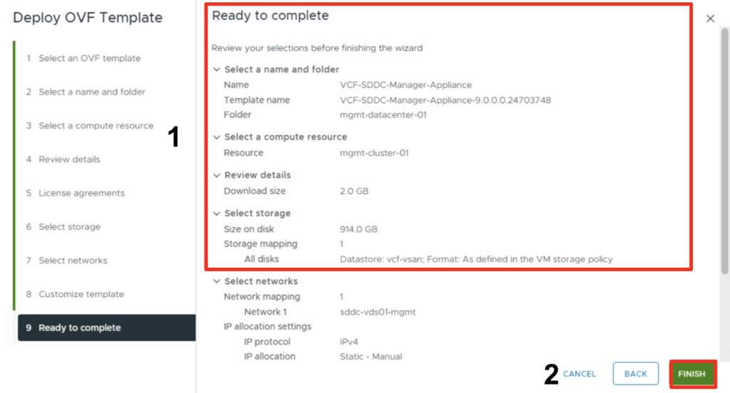 - Click Finish to start the deployment.