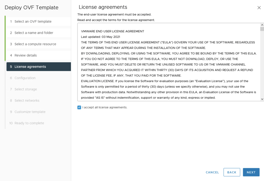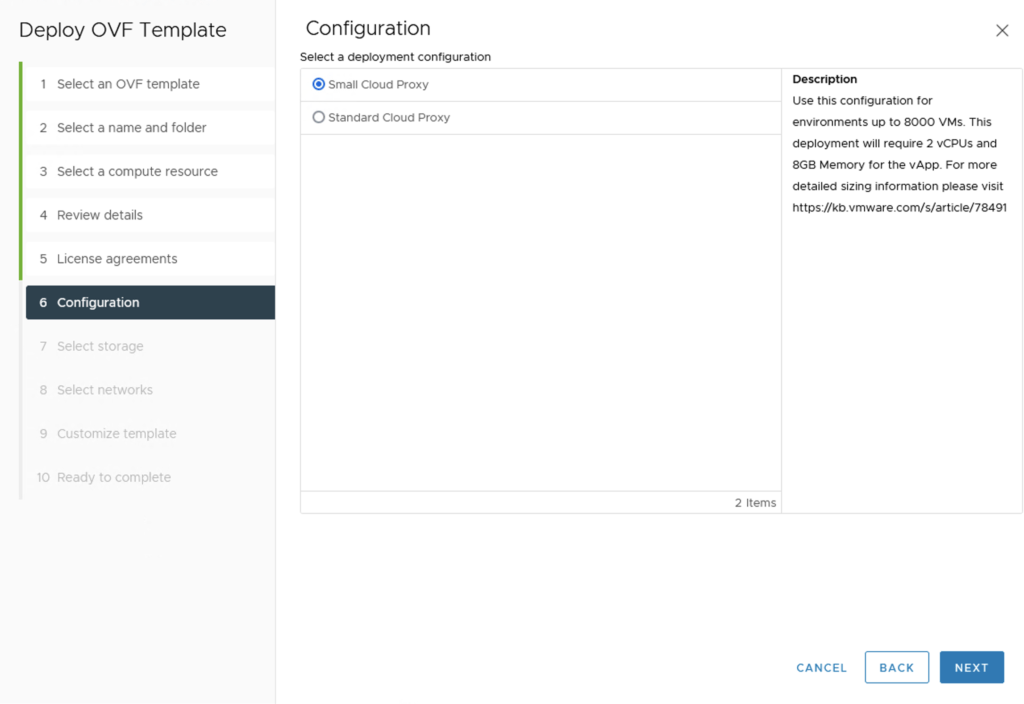 Select a size and click next. If the environment is larger than 8k VMs you would want to deploy the Standard size. The sizing guide can be found here