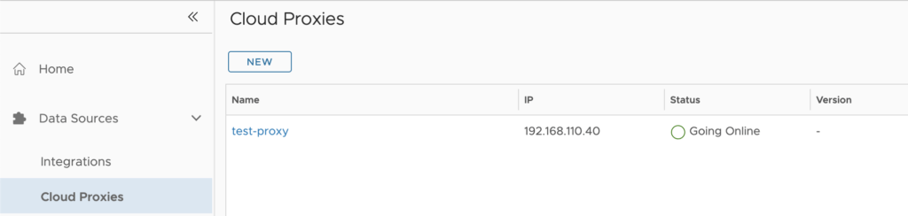 Once you are logged on We can go to Data Sources -> Cloud Proxies and press on New. example: