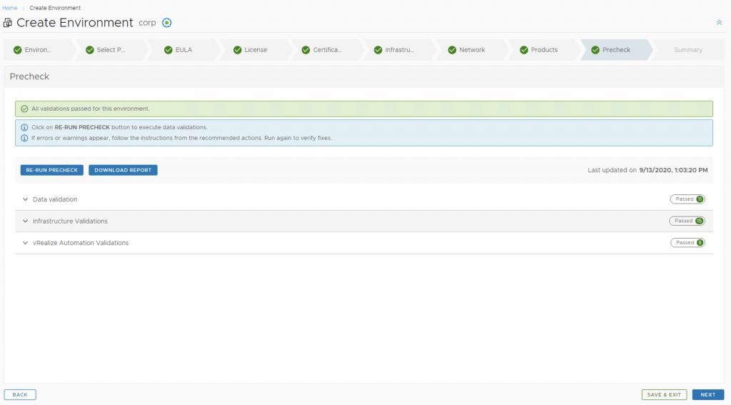 Run the precheck and verify that everything is green then click Next