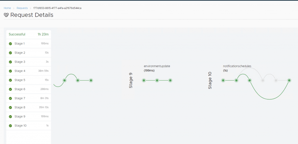 Next we are taken to the request details where we can follow the process that LCM is performing for us automatically.