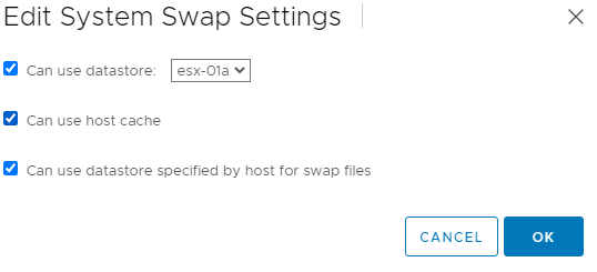 For vCenter go to the host in question to Configure -> System -> System Swap