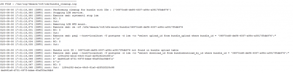 /opt/vmware/vcf/lcm/lcm-app/bin/bundle_cleanup.py ee194251-9fe4-4729-9c29-ca5172acffc6