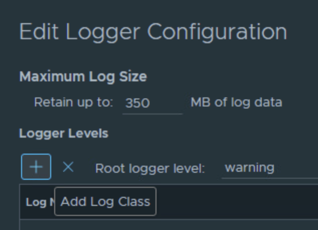3. Add the WebhookSender Class We need to tell VCF Operations to explicitly track the webhook notification class. Click the Plus (+) sign to add a new logger class.