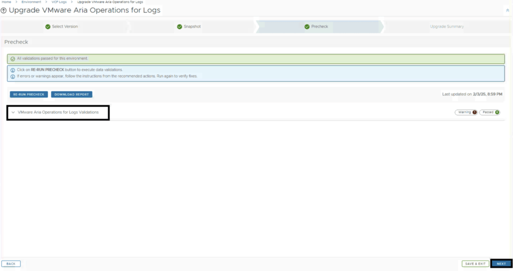 In this post I will go over upgrading Aria Operations for Logs 8.18.x appliance to 8.18.3 using Aria Suite Lifecycle. As a pre requirement we do need to have Aria Suite Lifecycle upgraded to 8.18. Instructions can be found here. The upgrade does not include the latest Product Support Pack. We can apply the latest Product Support Pack following the guide here.