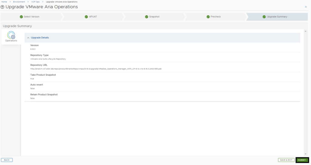 In this post I will go over upgrading Aria Operations 8.18.x appliance to 8.18.3 using Aria Suite Lifecycle. As a pre requirement we do need to have Aria Suite Lifecycle upgraded to 8.18. Instructions can be found here. The upgrade does not include the latest Product Support Pack. We can apply the latest Product Support Pack following the guide here.