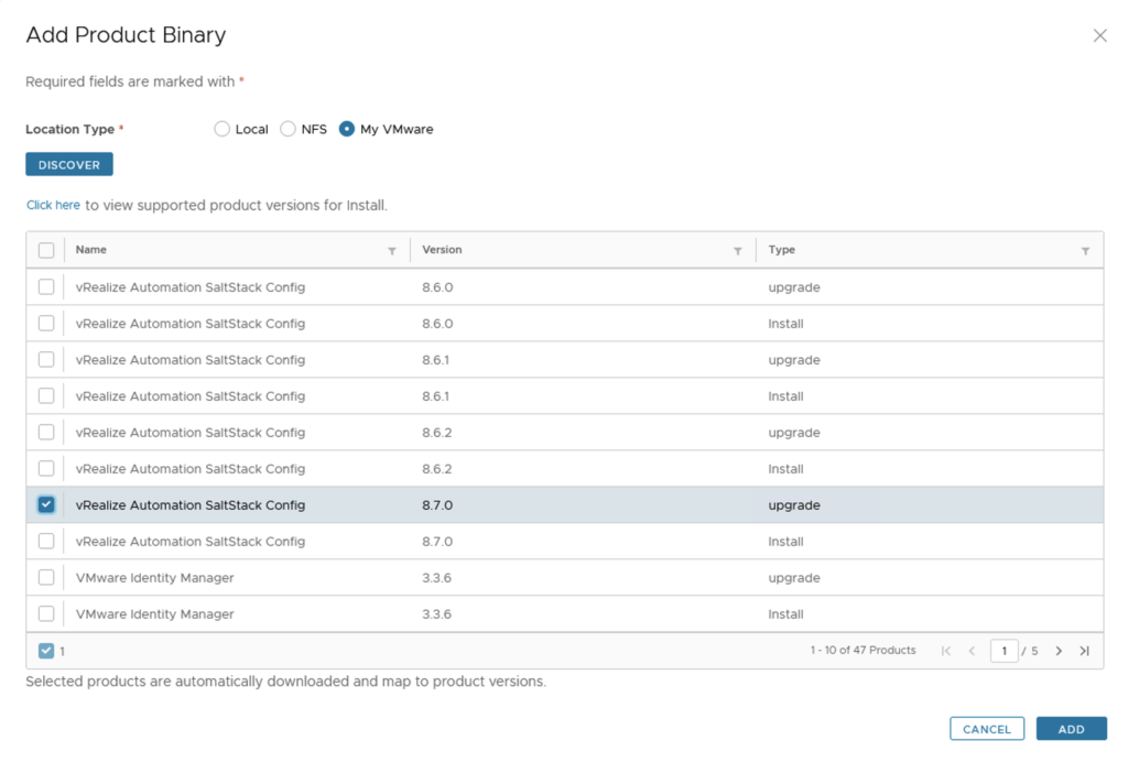 To get started we can go to vRealize Lifecycle Manager -> Lifecycle Operations -> Settings -> Binary Mapping. (If you haven’t added your My VMware credentials you will need to do that first by going to vRealize Lifecycle Manager -> Lifecycle Operations -> Settings -> My VMware)