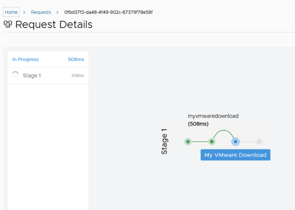This will create a request and start downloading the package. To view the progress we can click on the Click Here hyperlink