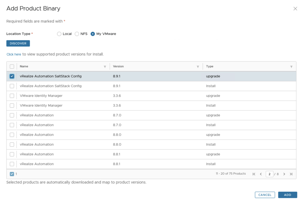To get started we can go to vRealize Lifecycle Manager -> Lifecycle Operations -> Settings -> Binary Mapping. (If you haven’t added your My VMware credentials you will need to do that first by going to vRealize Lifecycle Manager -> Lifecycle Operations -> Settings -> My VMware)