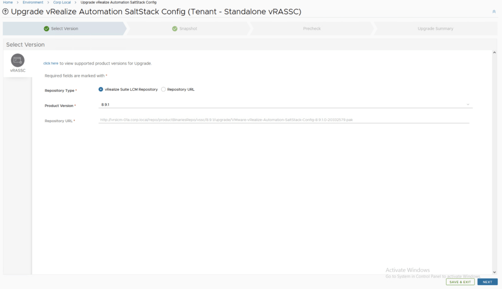 Select product Version 8.9.1 and click Next. We can also review the compatibility matrix to make sure the environment is compatible.