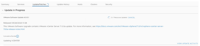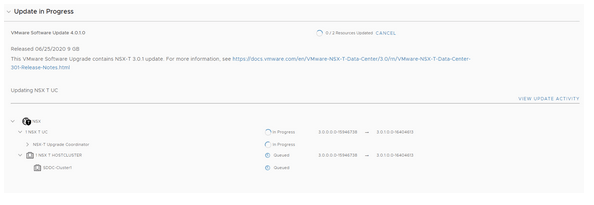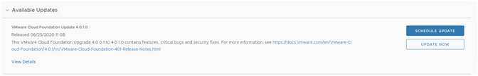 To be continued…after the vCenter upgrade is complete we can proceed with SDDC Manager to 4.0.1. Click on Update now