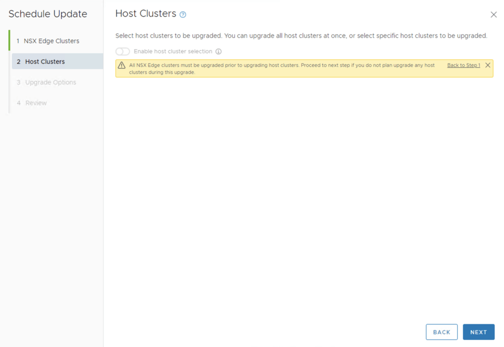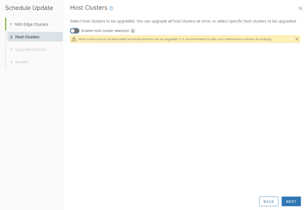 If we have multiple clusters we can enable Cluster-level selection and select the specific cluster(s) we want to upgrade.