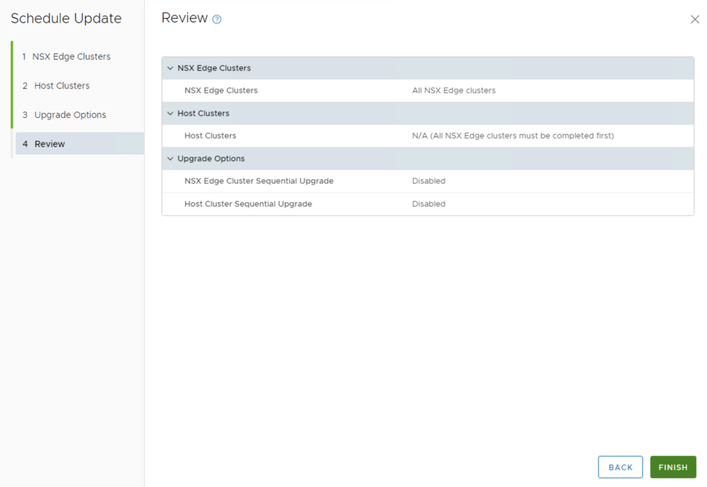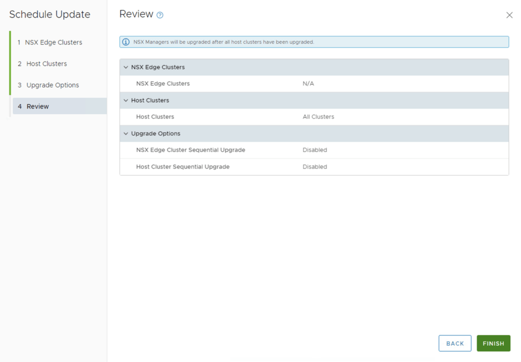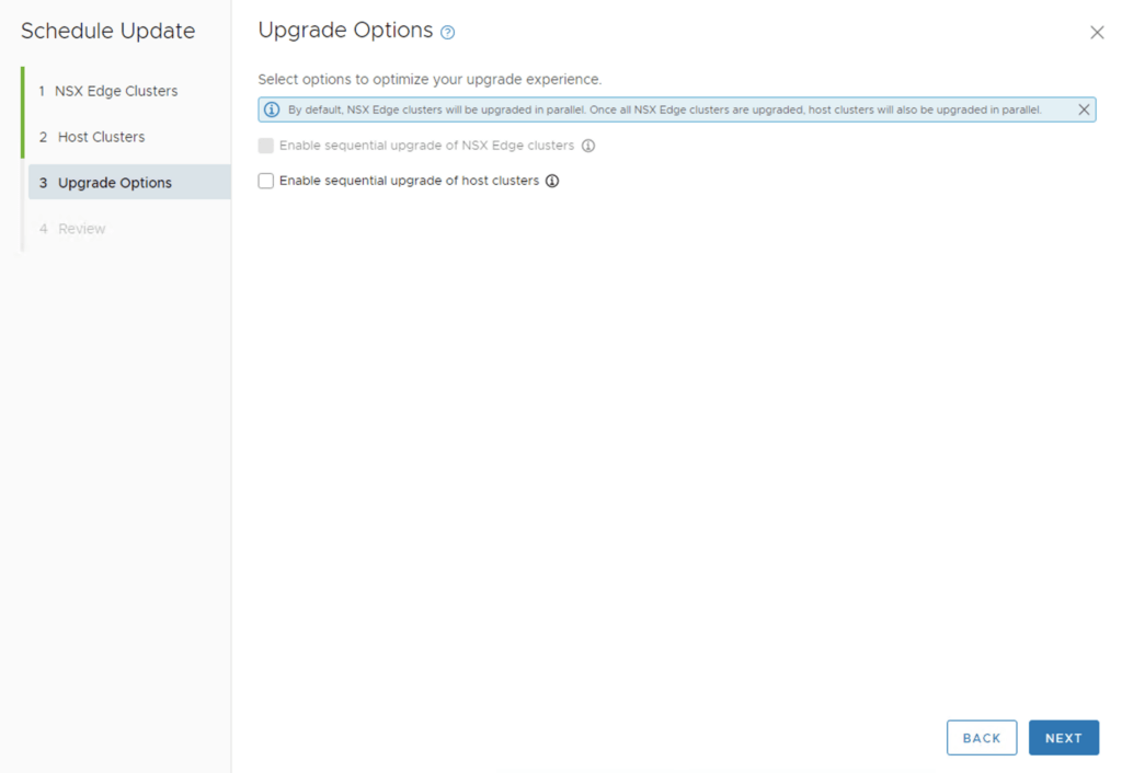 We can also enable sequential cluster upgrade, quick boot and the ability to evacuate offline VMs part of the maintenance. Click Next