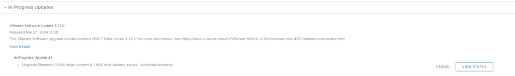 The upgrade will go thought upgrading the NSX edges. We can view the upgrade status by clicking on view status