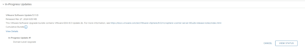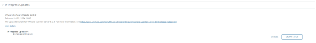 We can follow the status of the upgrade by clicking on the view status tab