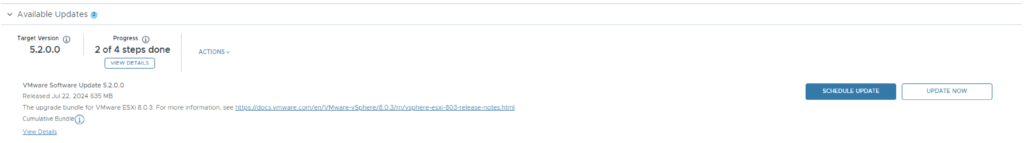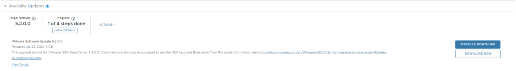 Next step is to upgrade NSX-T installation to NSX-T 4.2.0.0. The release notes can be found here.
