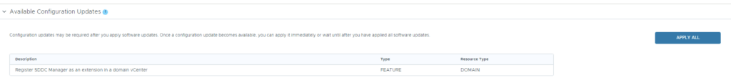 The next step is to upgrade VCF by going to Inventory -> Workload Domains -> Select the workload domain -> Updates -> Update Now