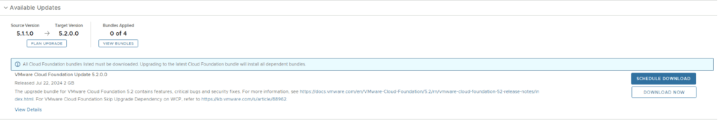 With the release of VCF 5.2 I wanted to get my lab upgraded. The release blog can be found here and the release notes are here
