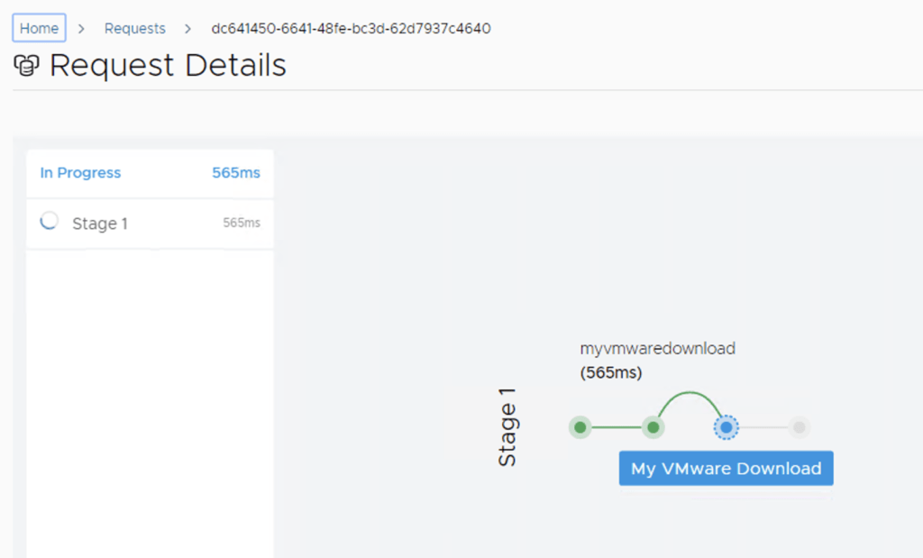This will create a request and start downloading the package. To view the progress we can click on the Click Here hyperlink