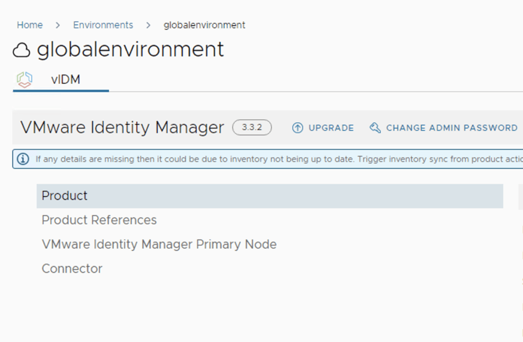 An Inventory sync is required when performing vIDM upgrades. We trigger the sync from the UI and click on Proceed once completed to continue