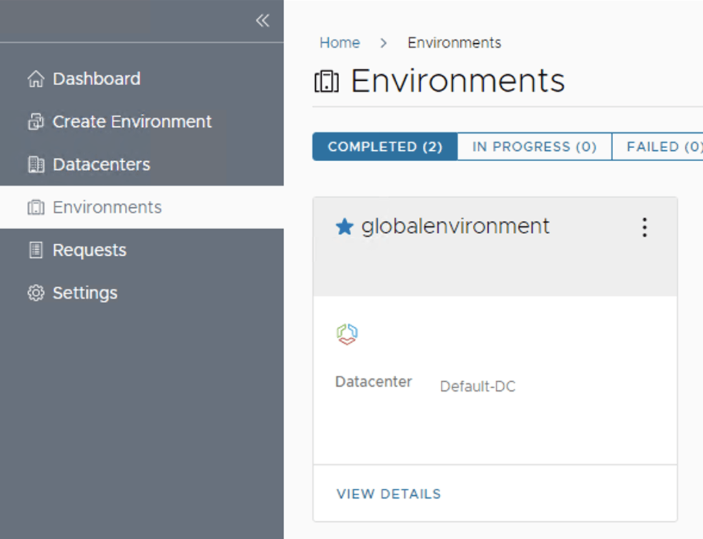 After the download is complete we can go to Environments -> View Details on the environment that includes vIDM