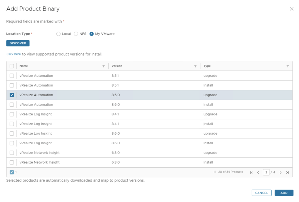 To get started we can go to vRealize Lifecycle Manager -> Lifecycle Operations -> Settings -> Binary Mapping. (If you haven’t added your My VMware credentials you will need to do that first by going to vRealize Lifecycle Manager -> Lifecycle Operations -> Settings -> My VMware)