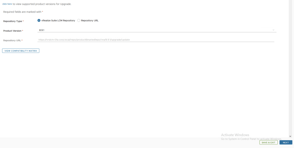 Select product Version 8.9.1 and click Next. We can also review the compatibility matrix to make sure the environment is compatible.