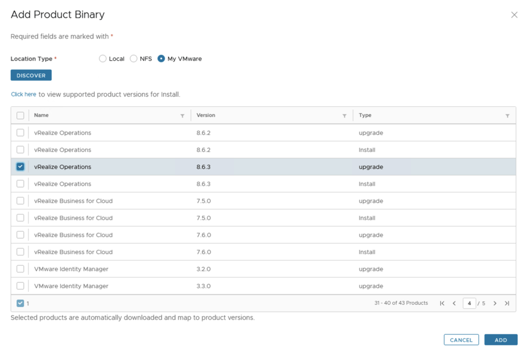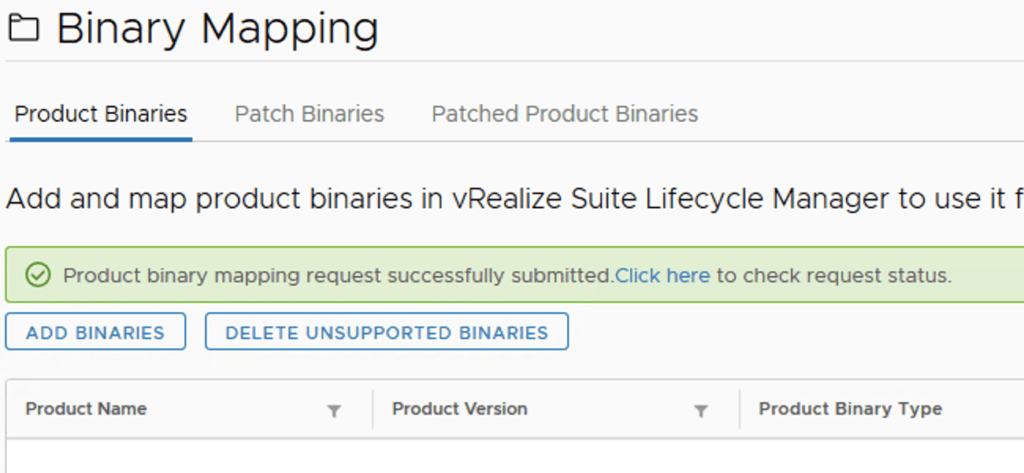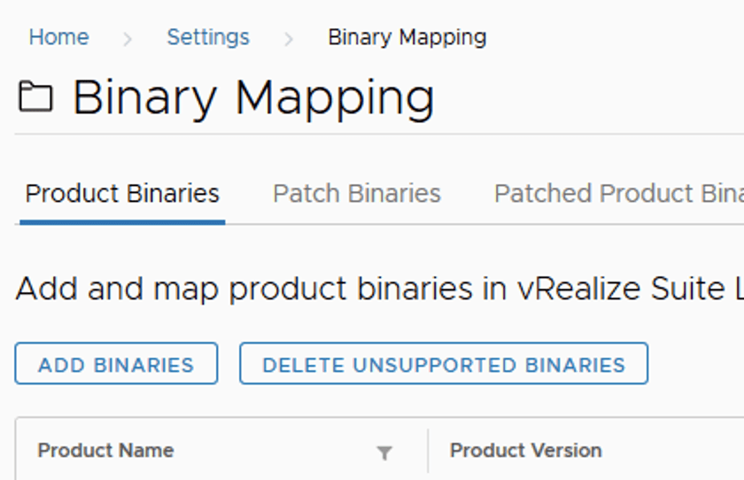 To get started we can go to vRealize Lifecycle Manager -> Lifecycle Operations -> Settings -> Binary Mapping. (If you haven’t added your My VMware credentials you will need to do that first by going to vRealize Lifecycle Manager -> Lifecycle Operations -> Settings -> My VMware)
