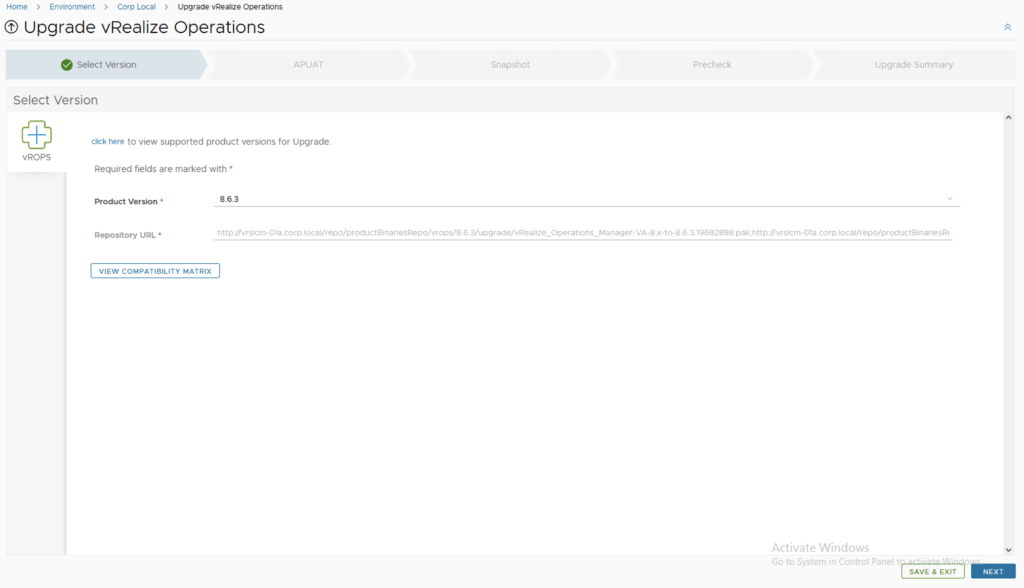Select product Version 8.6.3 and click Next. We can also review the compatibility matrix to make sure the environment is compatible.