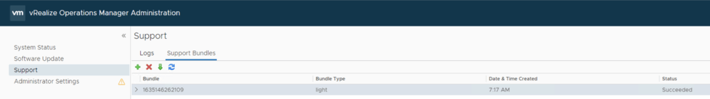 Next lets go and review the tool`s output by going to Support -> Support bundles -> Select the bundle that was just generated and click on the download button