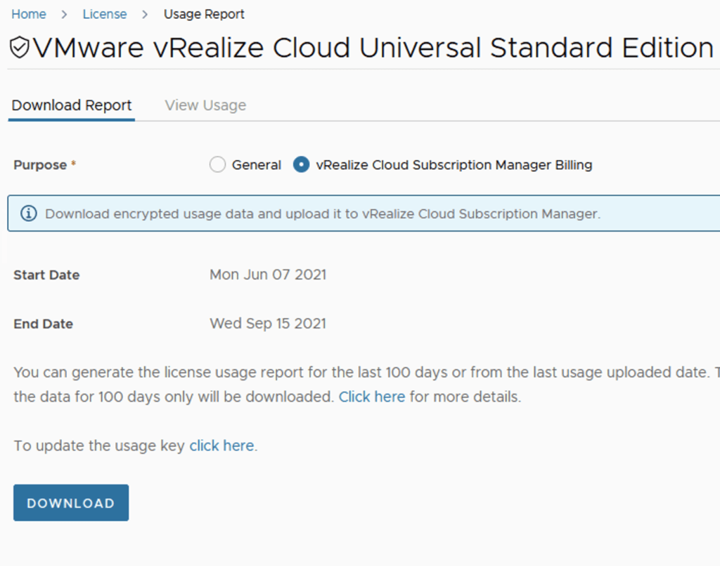In this post i will go over the Usage Report for vRealize Cloud Licenses. I will cover the online method which does the reporting automatically as well as the offline method that requires us to upload the usage manually. The documentation for the Usage Report can be found here. The vRealize Cloud Universal service description EULA and requirements can be found here.