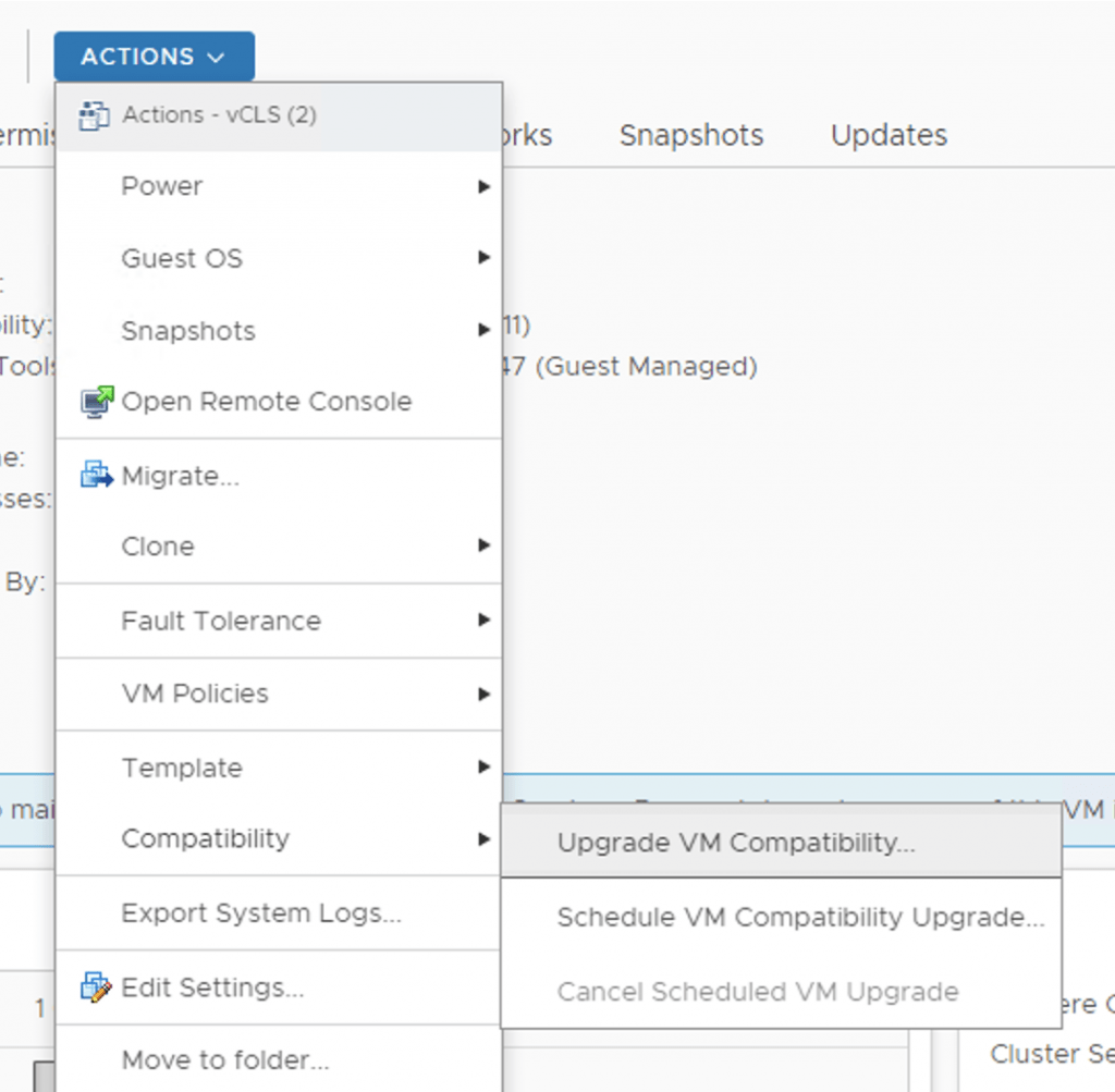 Under the Actions -> Compatibility -> Upgrade VM compatibility