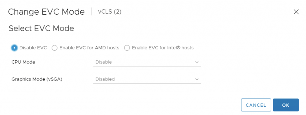 Reviewing the VMX file it seems like EVC is enabled on the vCLS VMs. I didnt want to enable EVC on the whole cluster so i wanted to do it only on the specific VMs.